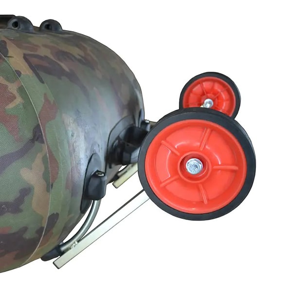 Колеса не мешают при плавании, не требуют дополнительного места в лодке и быстро снимаются при необходимости. Это лучшие колеса для лодки ПВХ без транца, если вы ищете баланс между простотой, надёжностью и доступной ценой. Они устойчивы к воздействию влаги, песка и механическим нагрузкам, а также подходят для перемещения лодки по песку, асфальту или траве.