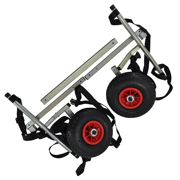 Дуже зручна тележка для транспортування човна. Конструкція міцна, колеса великі — легко котиться навіть по піску чи нерівній місцевості. Значно полегшує доставку човна до води. Покупкою задоволений!