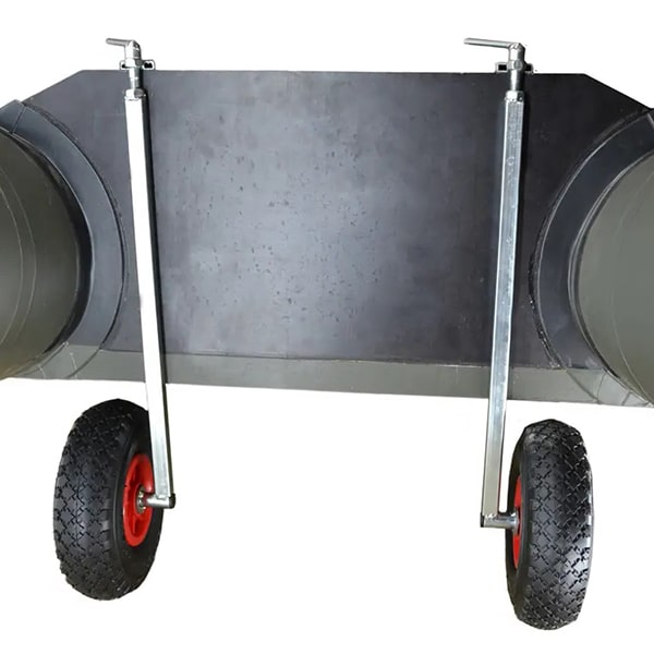 Пневматические колёса диаметром 260 мм с игольчатыми подшипниками обеспечивают плавный ход даже по неровной поверхности. Максимальная нагрузка — до 110 кг, а быстросъёмные колёса на лодку выдерживают скорость перемещения до 10 км/ч. Это делает транспортировку лодки с мотором и снаряжением лёгкой задачей даже для одного человека.